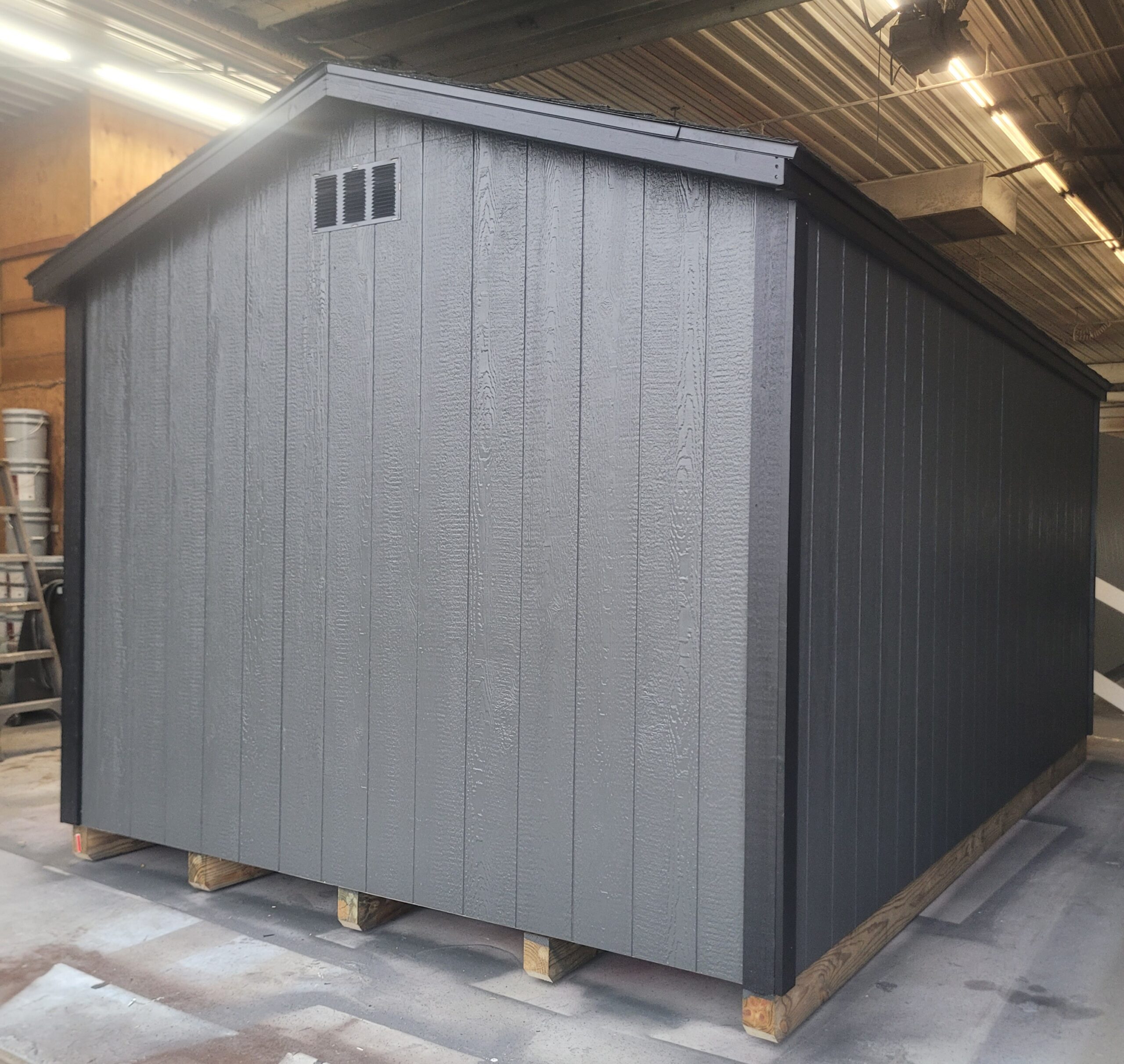 10’x16′ 7ft wall Standard Gable. Double 67″x72″ wooden doors, 2×3 windows, painted, and 30yr shingles.
